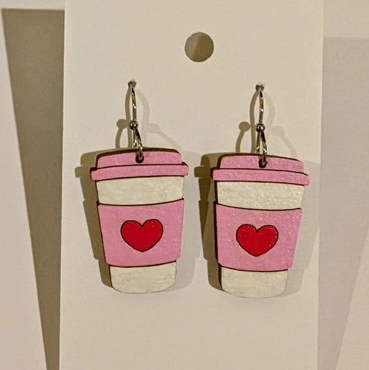 Coffee Cup Heart Dangle Valentine's Day Earrings