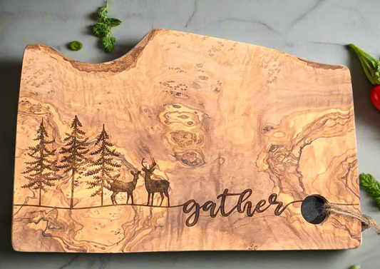 Deer Gather Cutting Board, Olive Wood, Charcuterie Board