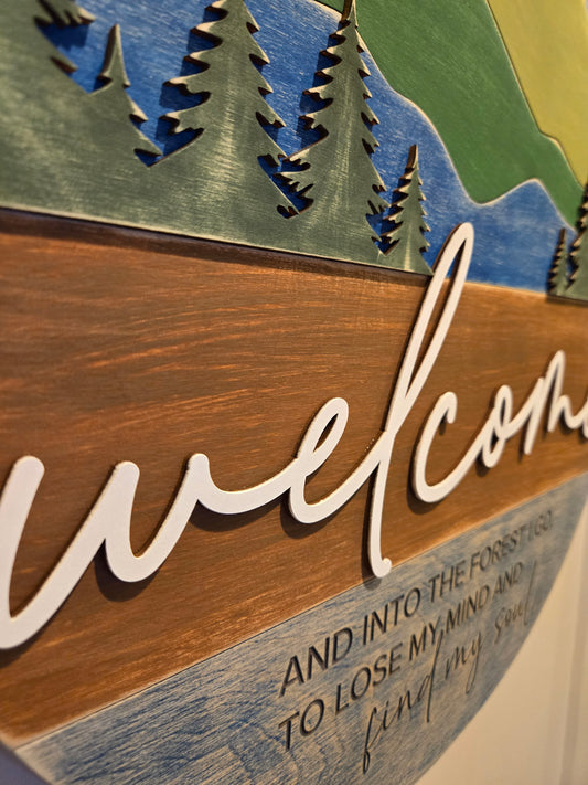 Into the Forest Welcome Round Sign 18"