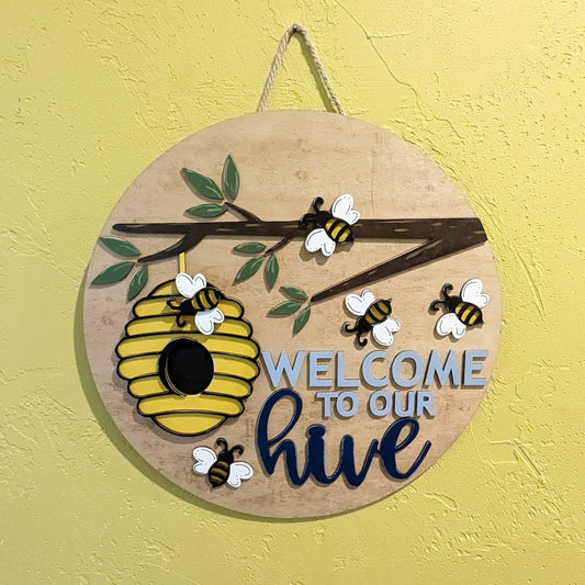 Bee Hive Welcome Sign, 15" Round