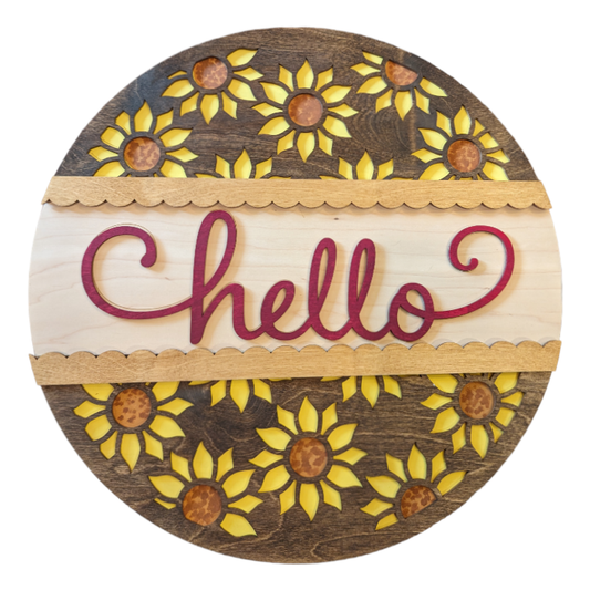 Hello Sunflower 18" Round Sign