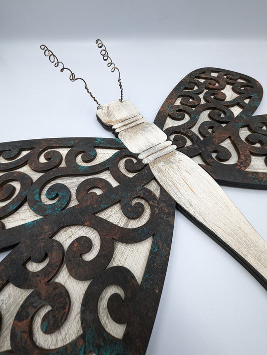 Faux Rusty Spindle Dragonfly Wall Hanging
